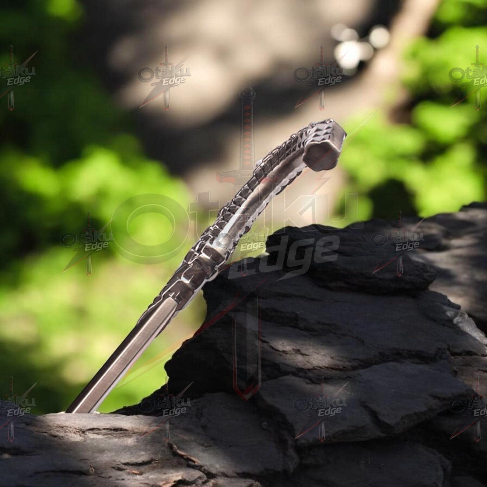 Life-size metal replica of V's serpent-handle cane from Devil May Cry 5.