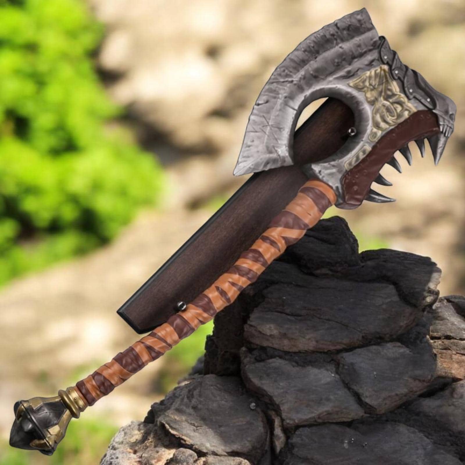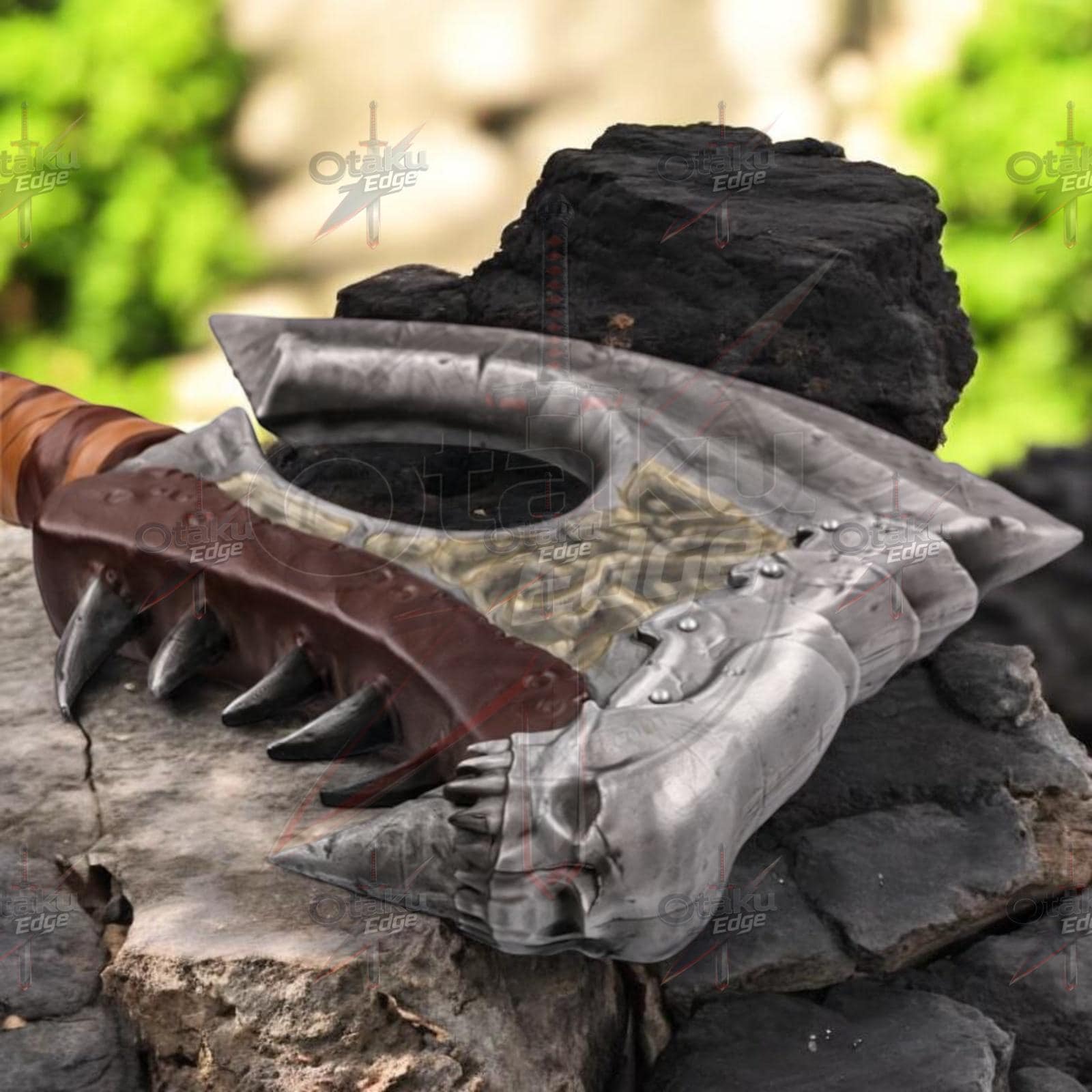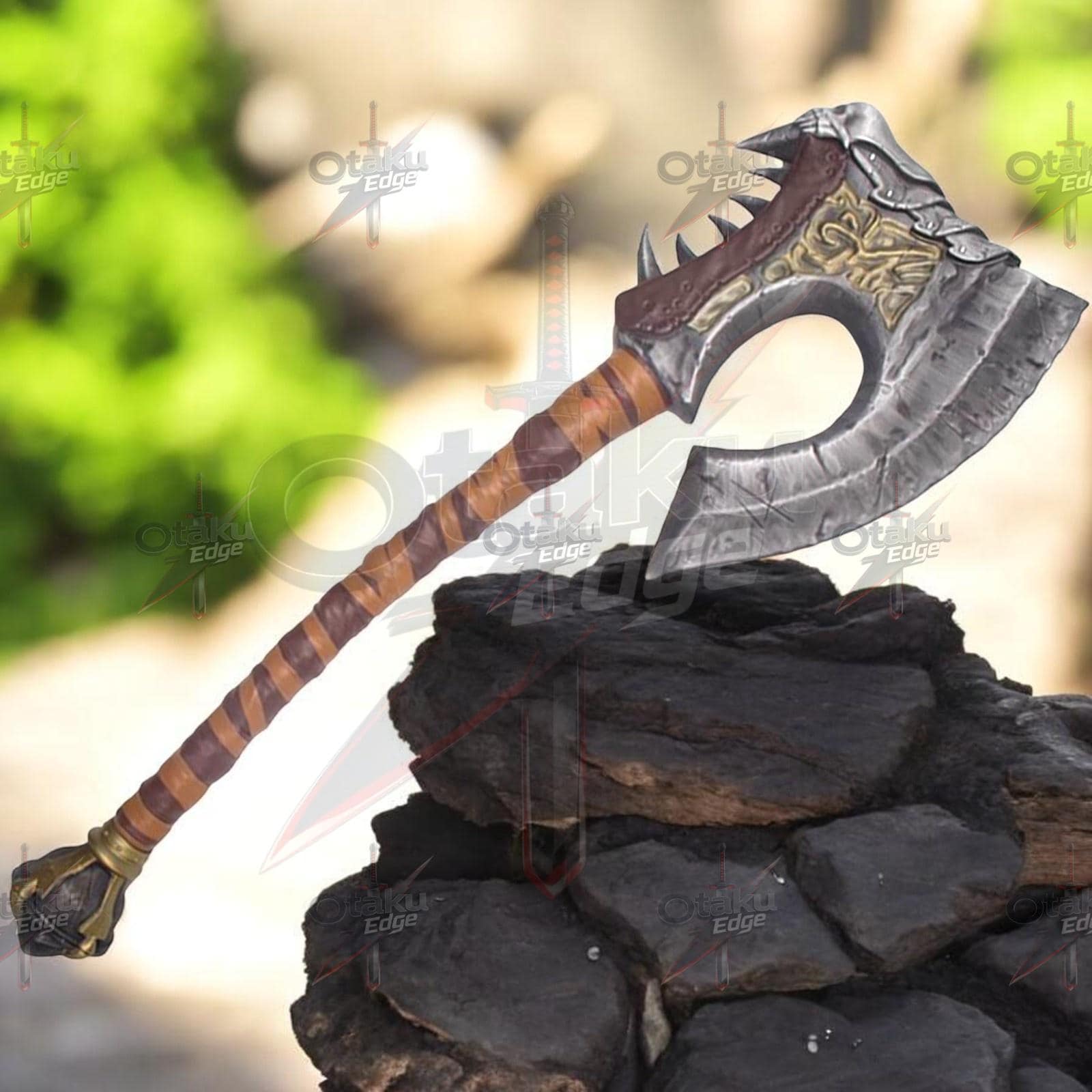 Gorehowl is the signature weapon of Warchief Grommash Hellscream of the Warsong Clan — a two-handed axe carried into every defining battle of Orcish history, from the assault on Draenor to the fall of Mannoroth. Blizzard's lore describes it as an axe that 'wept for its victims,' and its silhouette has become a visual shorthand for WoW's Orc identity. This replica captures the iconic serrated jaw, curved beard, and wrapped haft that make Gorehowl instantly recognisable to any World of Warcraft player.